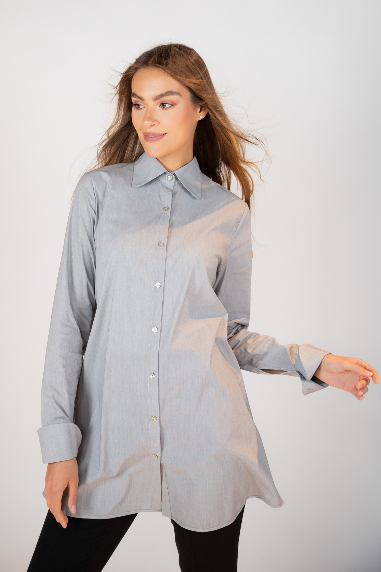 Chemise longue, élégante et décontracté. Elle est muni d’un col chemisier arrondi, des manches longues avec des poignets napolitain à boutons, d’un dos croisé pour vous offrir de l’aisance et plus de confort dans vos mouvements. C’est un must have dans chaque garde robe d’une femme active puisque elle s’intègrera parfaitement à tous vos outfits les plus classiques au plus décontractés. Existe en plusieurs couleurs.
